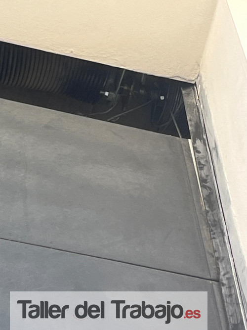 Arreglo de descuadre de puerta de 4 metros de alta por 3 metros de ancho. El cable ha enrollado fuera de la polea y ha descuadrado la puerta y partido el cable. .